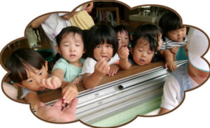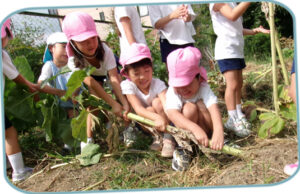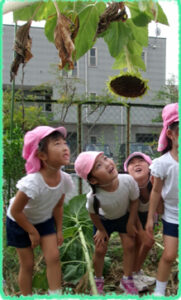 3才児うめ組の部屋前に行き、一緒に種取りをしていると